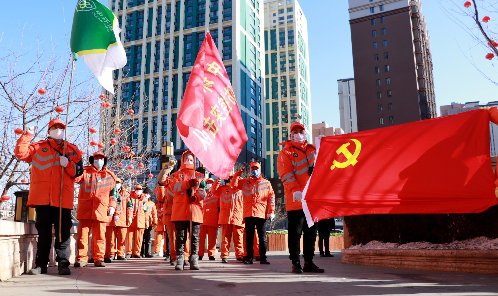 呼和浩特市玉泉區昭君路街道秋實璟峯匯小區出現1例確診病例后,為有效遏制疫情繼續擴散,2月4日上午,秋實璟峯匯成立疫情防控臨時黨支部和2支疫情防控突擊隊,同時對突擊隊進行授旗。