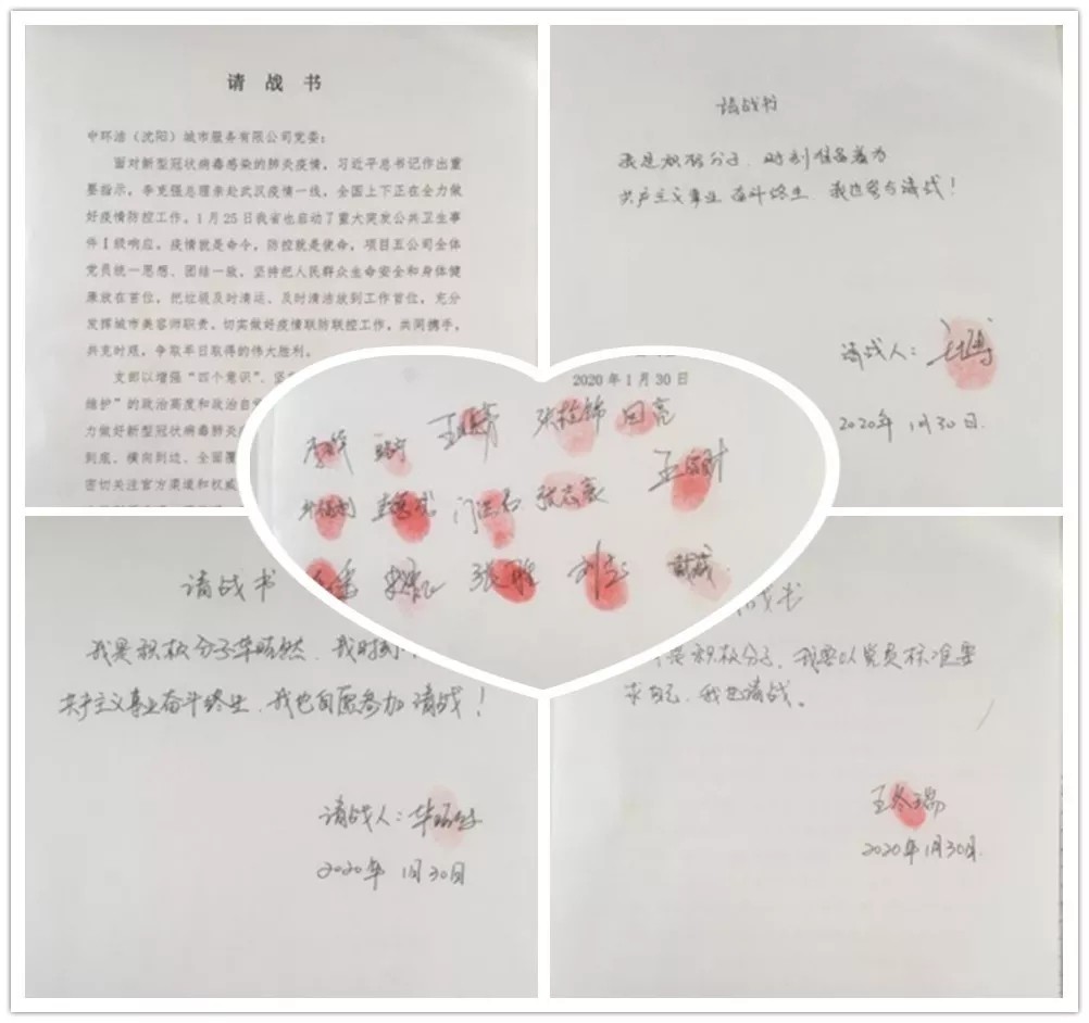 一份份請(qǐng)戰(zhàn)書(shū),一個(gè)個(gè)鮮紅的手印,記錄下中環(huán)潔廣大黨員對(duì)黨的赤誠(chéng)忠心!大疫面前,黨員積極響應(yīng)黨組織號(hào)召,紛紛遞交請(qǐng)戰(zhàn)書(shū)、決心書(shū),主動(dòng)請(qǐng)纓到最危險(xiǎn)的崗位,承擔(dān)最艱巨的任務(wù),用實(shí)際行動(dòng)詮釋了共產(chǎn)黨員的使命。